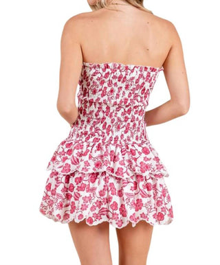 Baby Pink - Women's Printed Smocked Embroidered Mini Dress