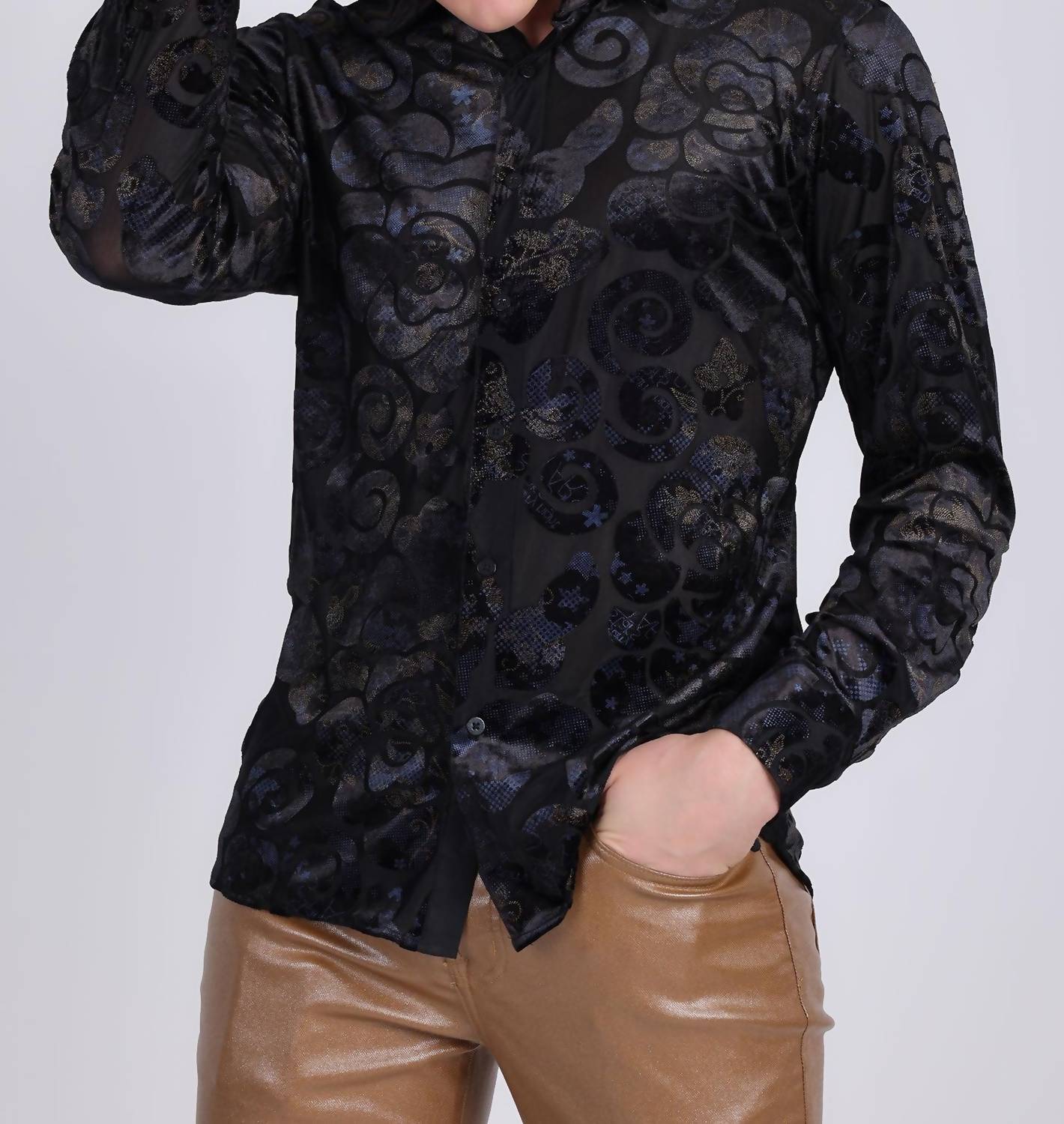 Discover the Floral Rage Long Sleeve Shirt by BARABAS, a standout piece with a captivating see-through floral design. Made from a 97% cotton and 3% spandex blend, this lightweight shirt offers comfort and style. With a classic collar and button closure, it exemplifies modern luxury clothing. This imported shirt requires dry cleaning and should not be bleached, ensuring its longevity in your wardrobe.