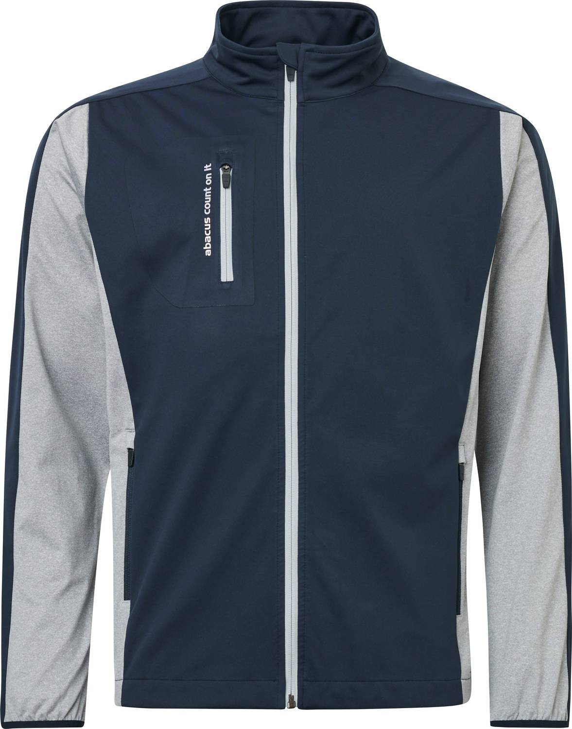 The Dornoch Softshell Full-zip Hybrid Jacket by Abacus Sportswear US is a versatile men's jacket in a stylish navy and light grey combination. This long sleeve bomber is crafted from a flexible and stretchable fleece softshell fabric that is water repellent, windproof, and breathable, with brushed fleece inside the sleeves and sides for warmth. Closure: Zip closure with a wind flap behind the front zip. Care: Machine wash and tumble dry.