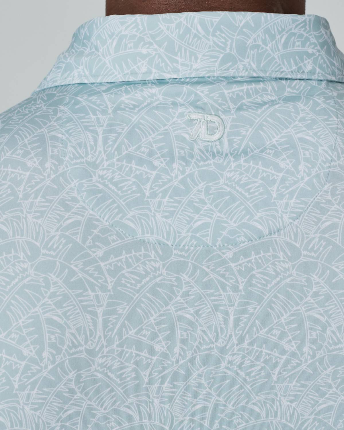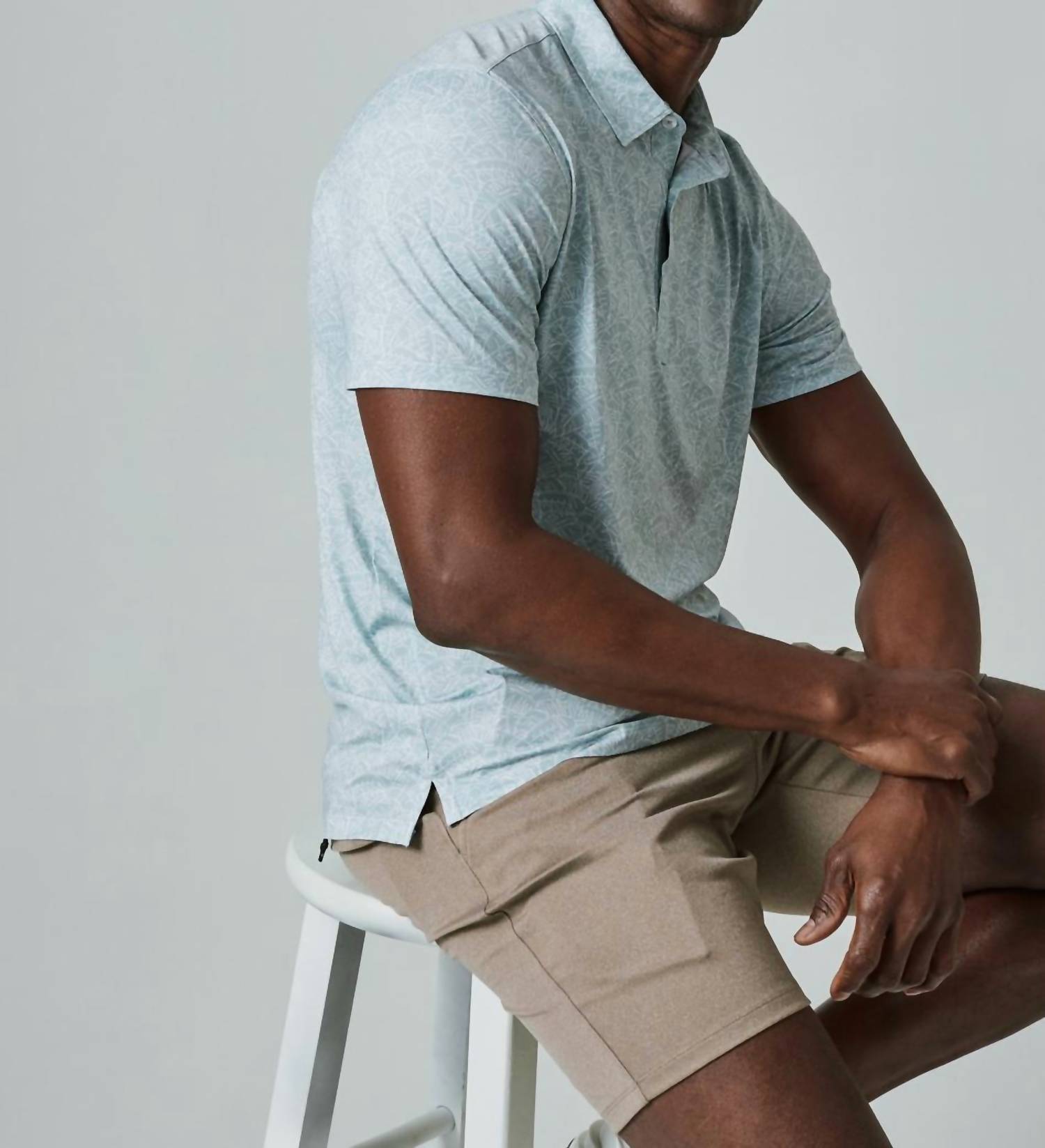Enhance your wardrobe with the Coron Polo by 7Diamonds, a perfect blend of style and function in a refreshing Seafoam hue. Featuring short sleeves, this collared polo is composed of 92% Polyester and 8% Spandex, offering both comfort and flexibility. The button closure adds a classic touch to this patterned polo, ideal for a preppy summer look. Care for this piece by machine washing on a delicate cycle and hanging it to dry. Model is 6'1" and wears a size medium.