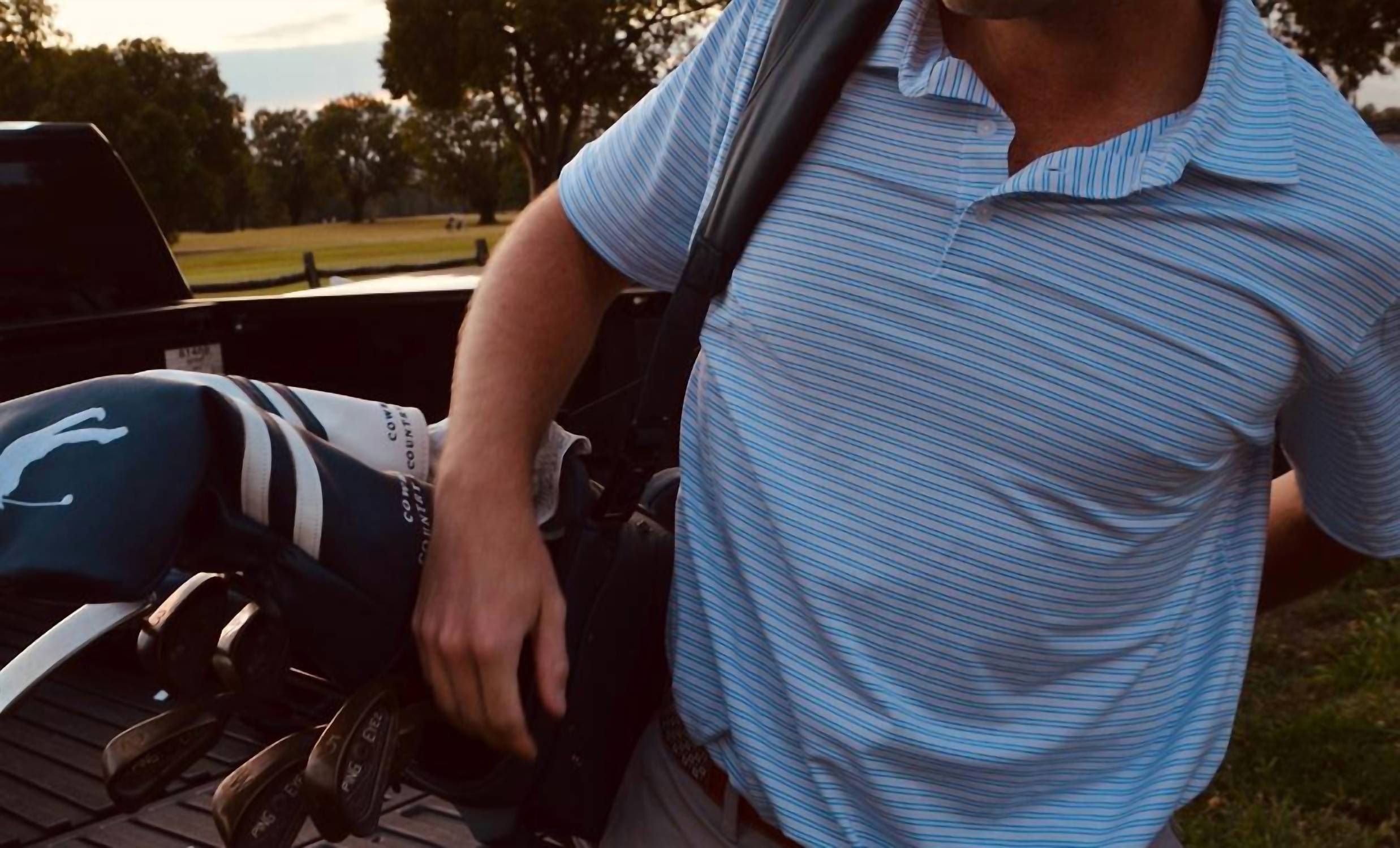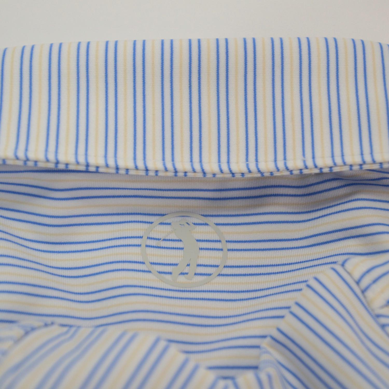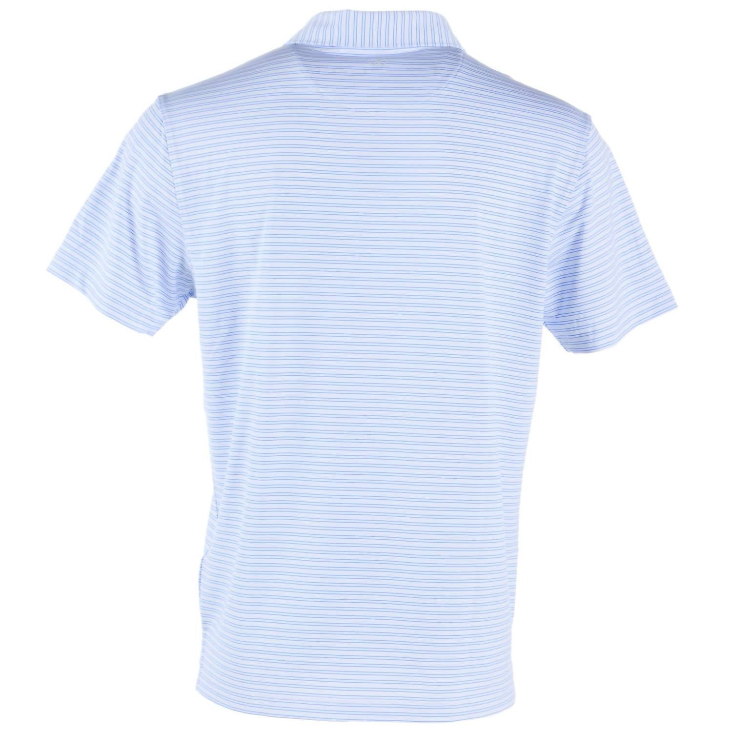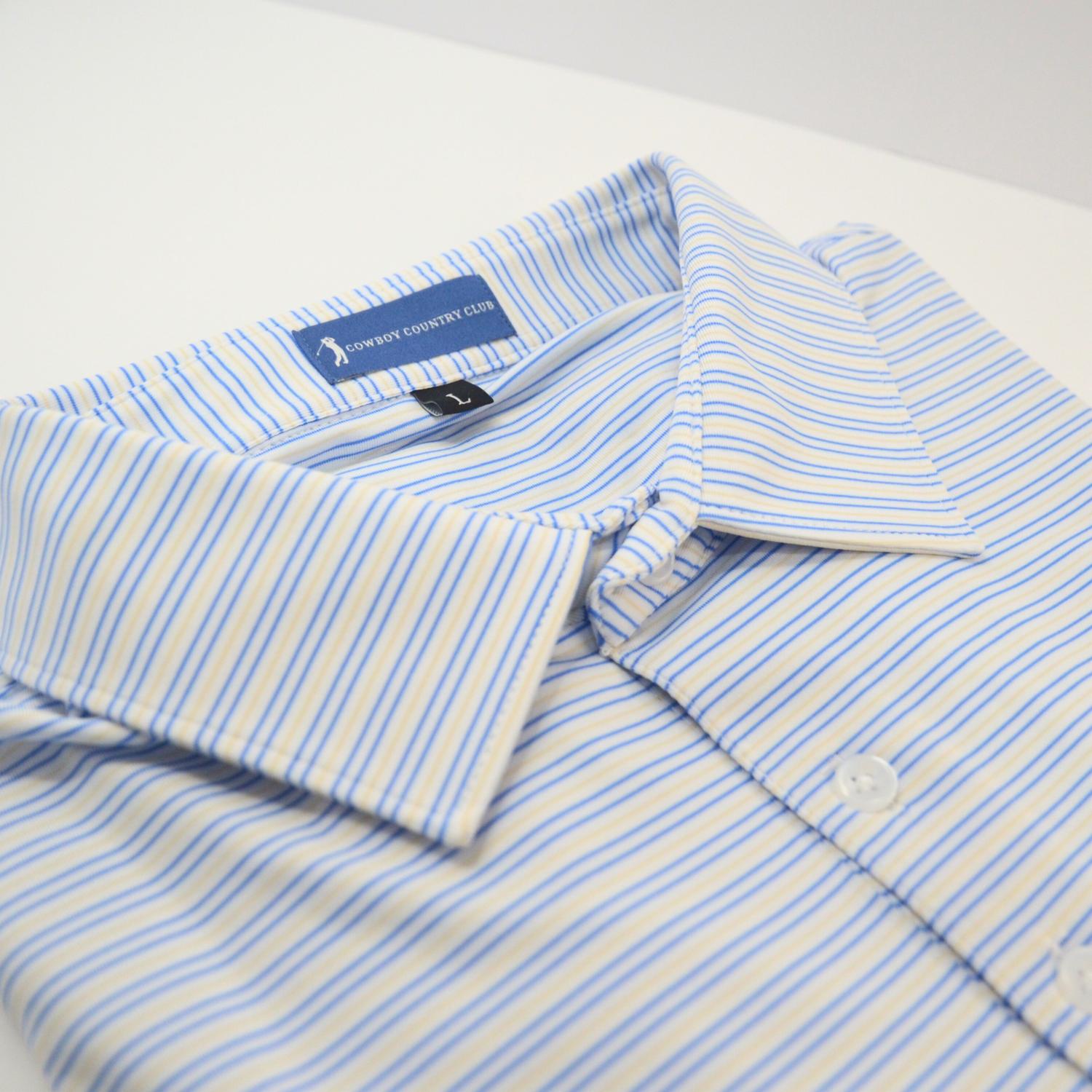 Elevate your spring wardrobe with the Men's Thin Stripe Golf Polo by Cowboy Country Club, a striking blue piece perfect for travel and leisure. The short sleeves and tailored fit ensure comfort and style on and off the course. Made from a moisture-wicking blend of 88% Polyester and 12% Spandex, this polo is designed for performance. Closure: Pull on. Care: Hand wash.