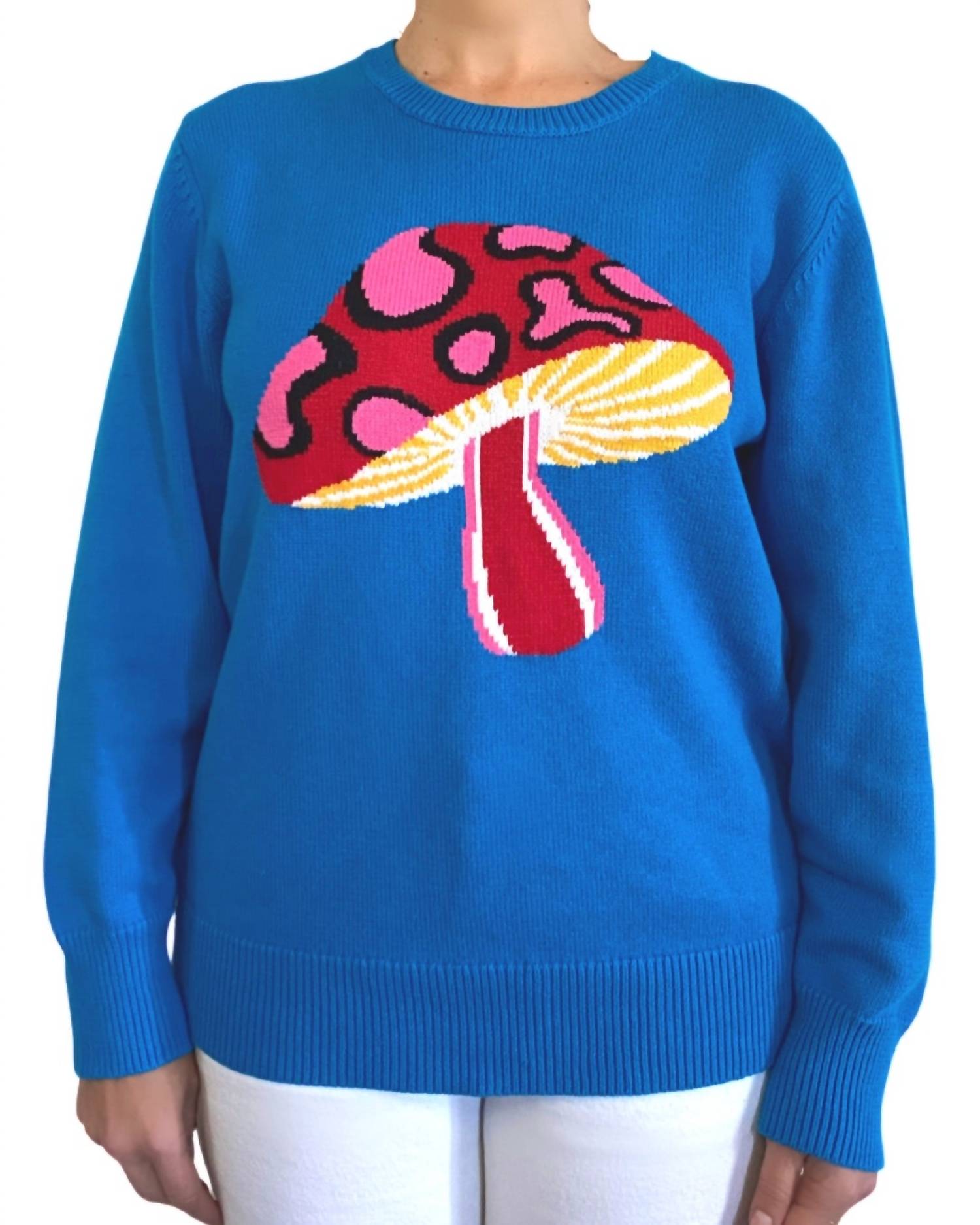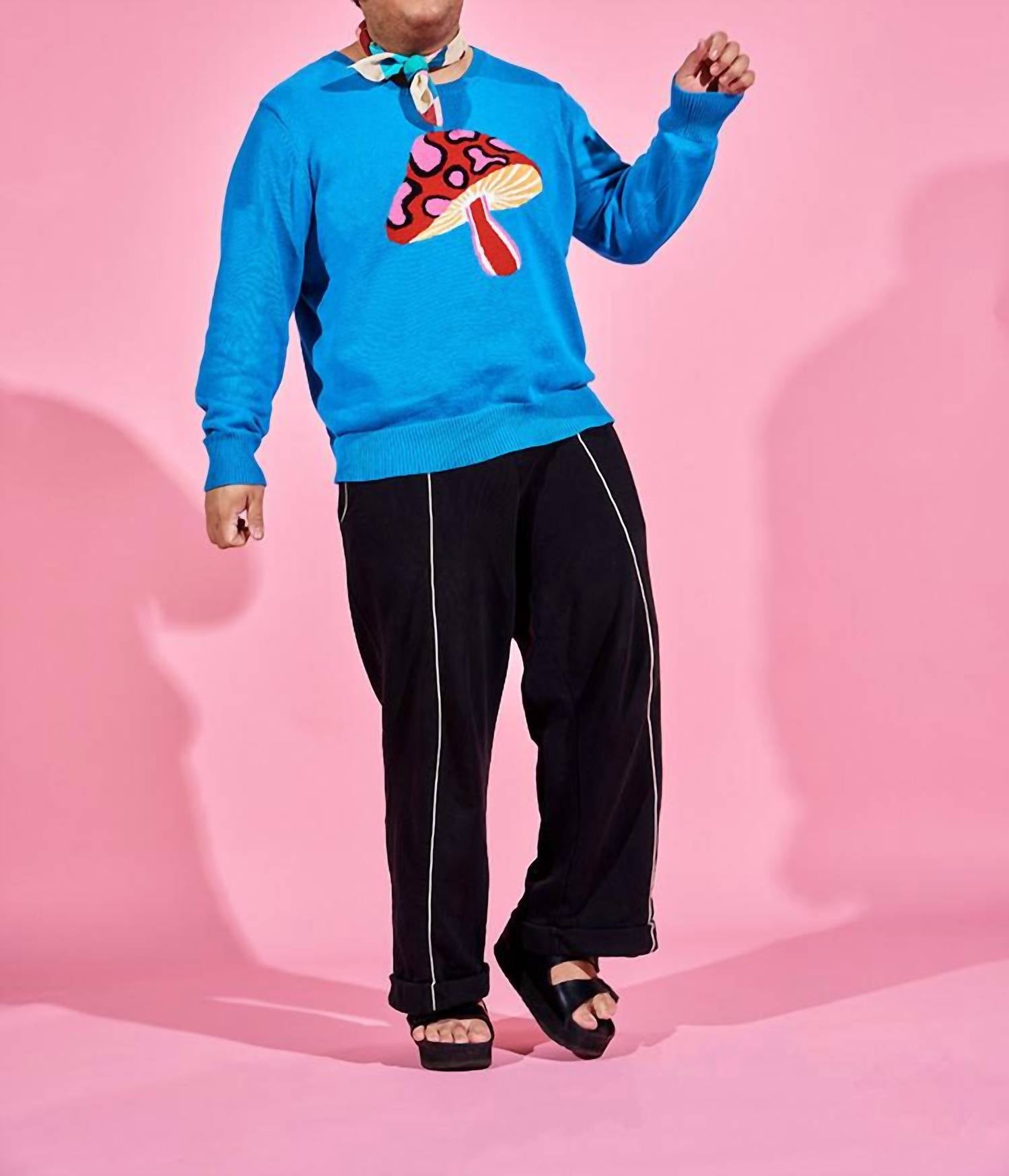 Elevate your streetwear collection with the Shroom Sweater by Replica Los Angeles, available in a striking cyan hue. This men's crewneck sweater features long sleeves and a funky 'Shroom' graphic intarsia, bringing a relaxed fit perfect for Thanksgiving travel occasions. Made from 95% Cotton and 5% Cashmere, this imported cotton blend masterpiece offers luxurious softness and warmth for fall. With a pull-on closure, it demands gentle care: dry clean or hand wash inside out using a gentle detergent, and avoid bleach or tumble drying for longevity.