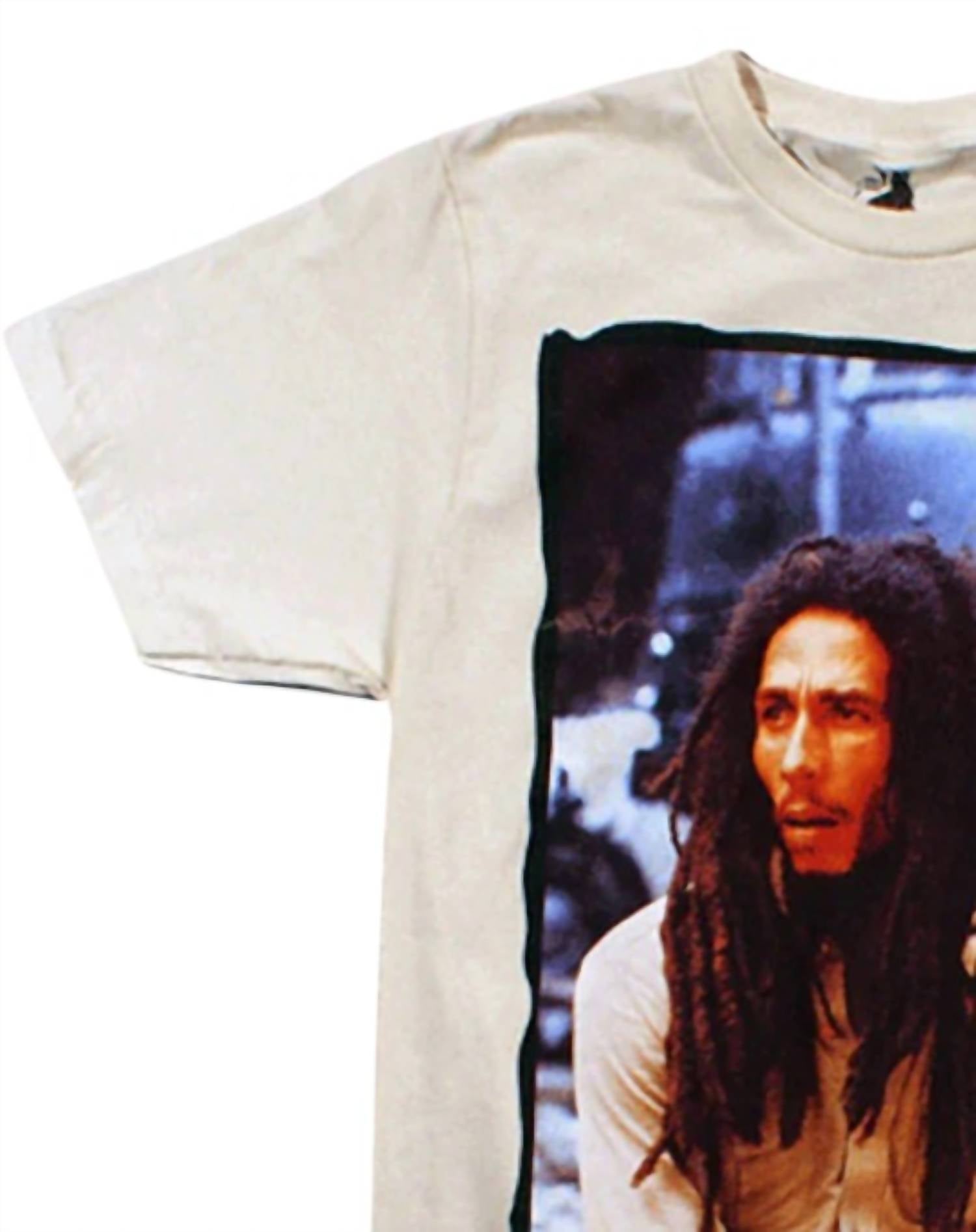 Embrace the spirit of reggae with the Men's Distressed Photo Short Sleeve T Shirt by Bob Marley, ideal for music festivals and streetwear enthusiasts alike. This cream shirt features short sleeves and a crewneck, made from 100% cotton for a comfortable men's standard fit. Adorned with a graphic design of Bob Marley, it's perfect for showcasing your music taste and cultural appreciation. Closure: Pull on. Care: Machine wash.