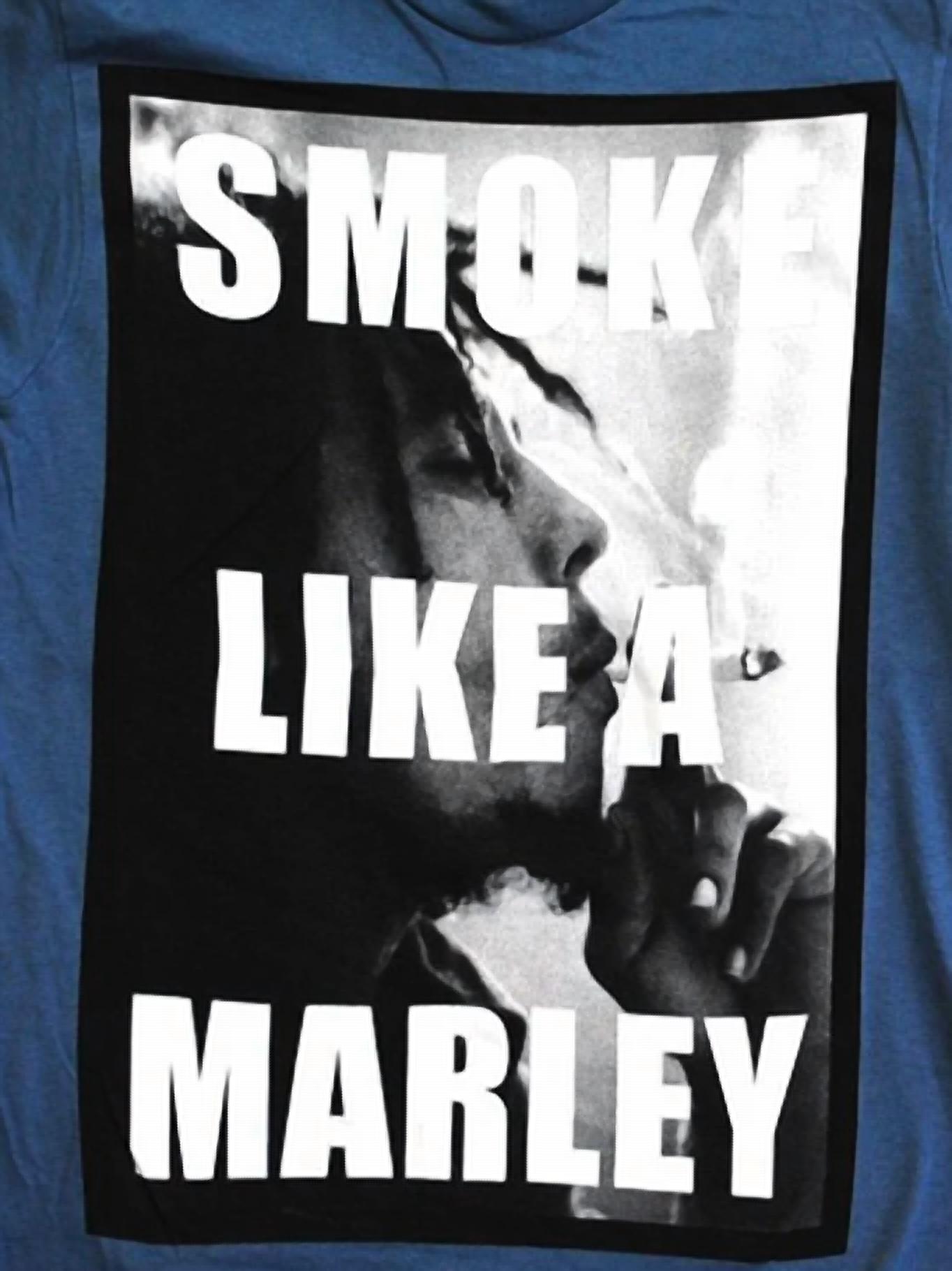 Celebrate your roots with the Men's Smoke Like Marley T-shirt by Bob Marley, crafted for both style and comfort. Featuring short sleeves and a classic crewneck, this tee is made entirely of cotton and showcases a striking graphic portrait of Bob Marley. The tee comes in a versatile blue color and is a perfect choice for holiday parties with its relaxed pull-on closure. Embrace the streetwear trend this summer with this iconic piece designed for easy wear and effortless cool.