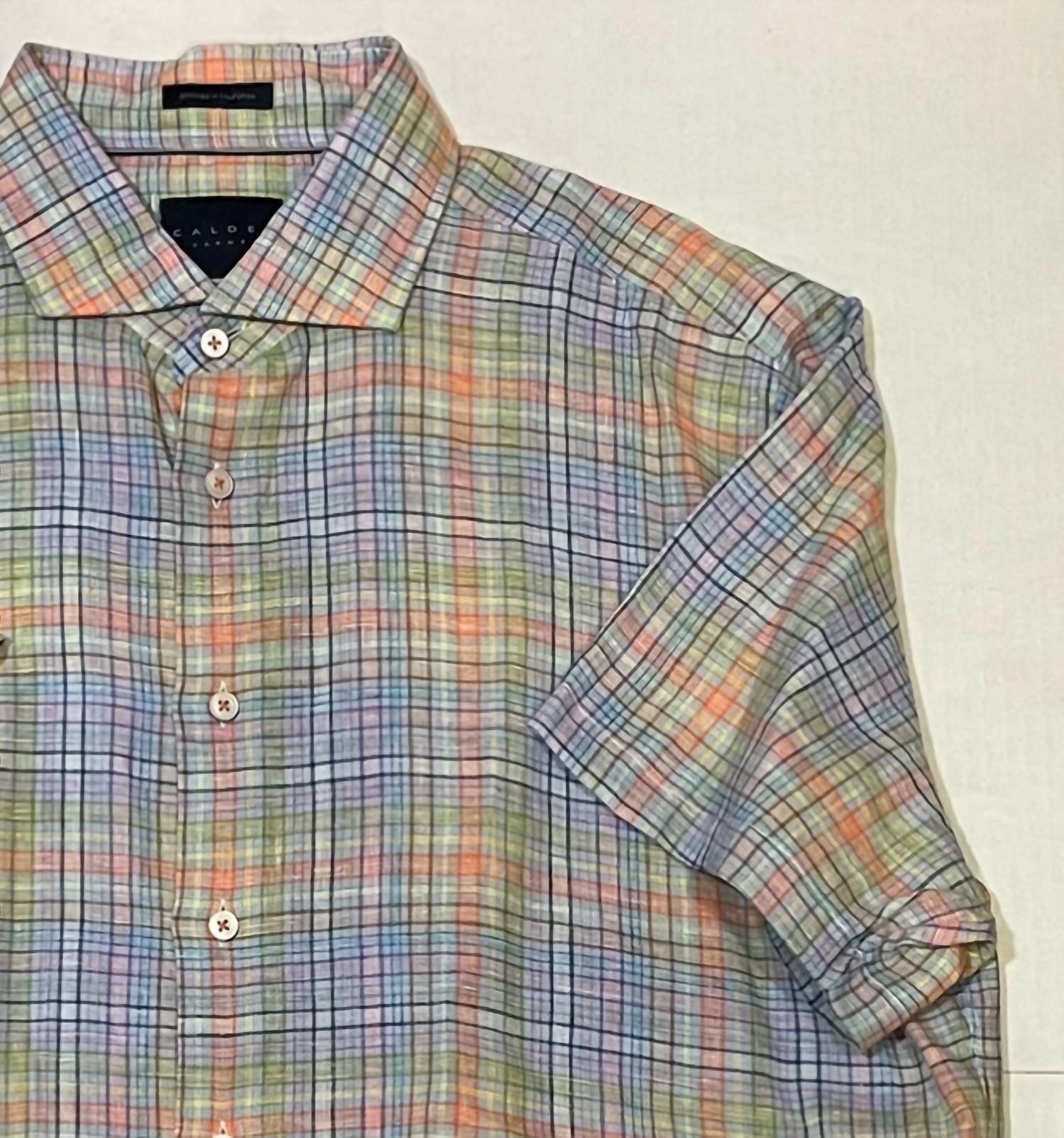 Introducing the Men's Plaid Short Sleeve Shirt by CALDER CARMEL, a perfect choice for effortless summer style and travel adventures. Crafted with a classic collar neckline, this casual multicolor shirt features a timeless plaid and check pattern. Sleeve Length: Short Sleeve. Closure: Button closure. Care: Machine wash and line dry.