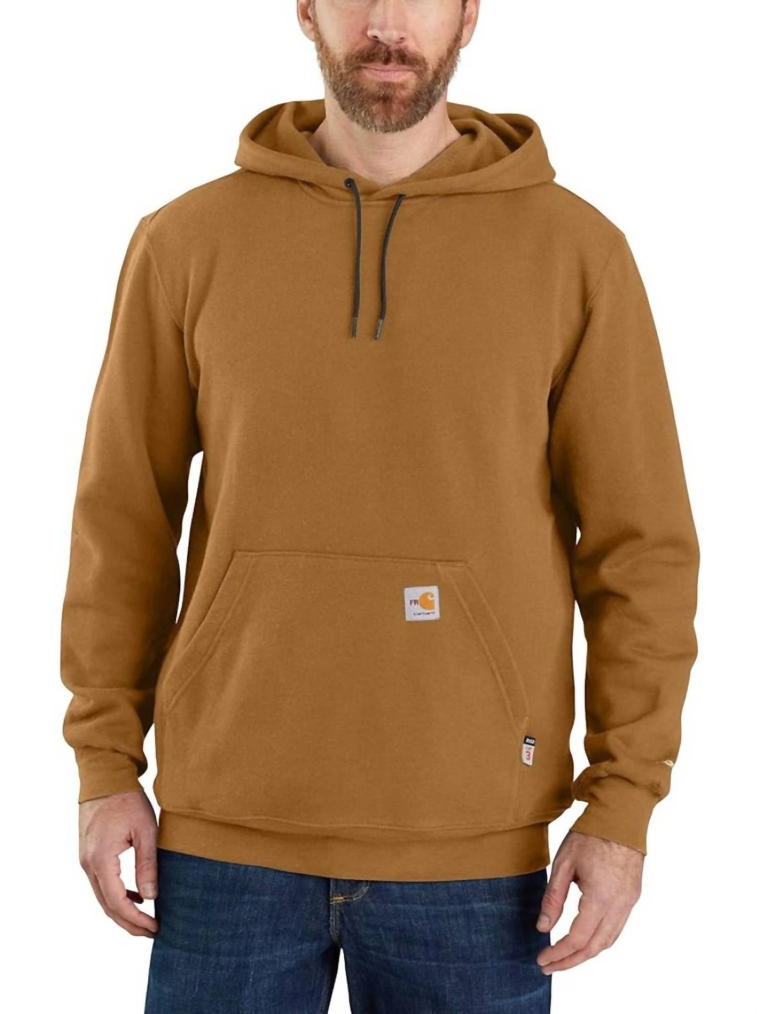 Meets the performance requirements of NFPA 70E and ASTM F1506. UL® classified to NFPA 2112. Built with Force® technology. FastDry® technology. Attached three-piece hood with fire-resistant drawcord adjustable closure. Rib-knit cuffs and waist. Locker loop facilitates hanging. Carhartt FR and NFPA 2112/CAT 3 labels sewn on pocket. Front handwarmer pocket with inner media pocket. Machine wash cold. 40% Cotton, 35% Modacrylic, 15% Viscose, 8% Aramid, 2% Antistat fire-resistant fleece.