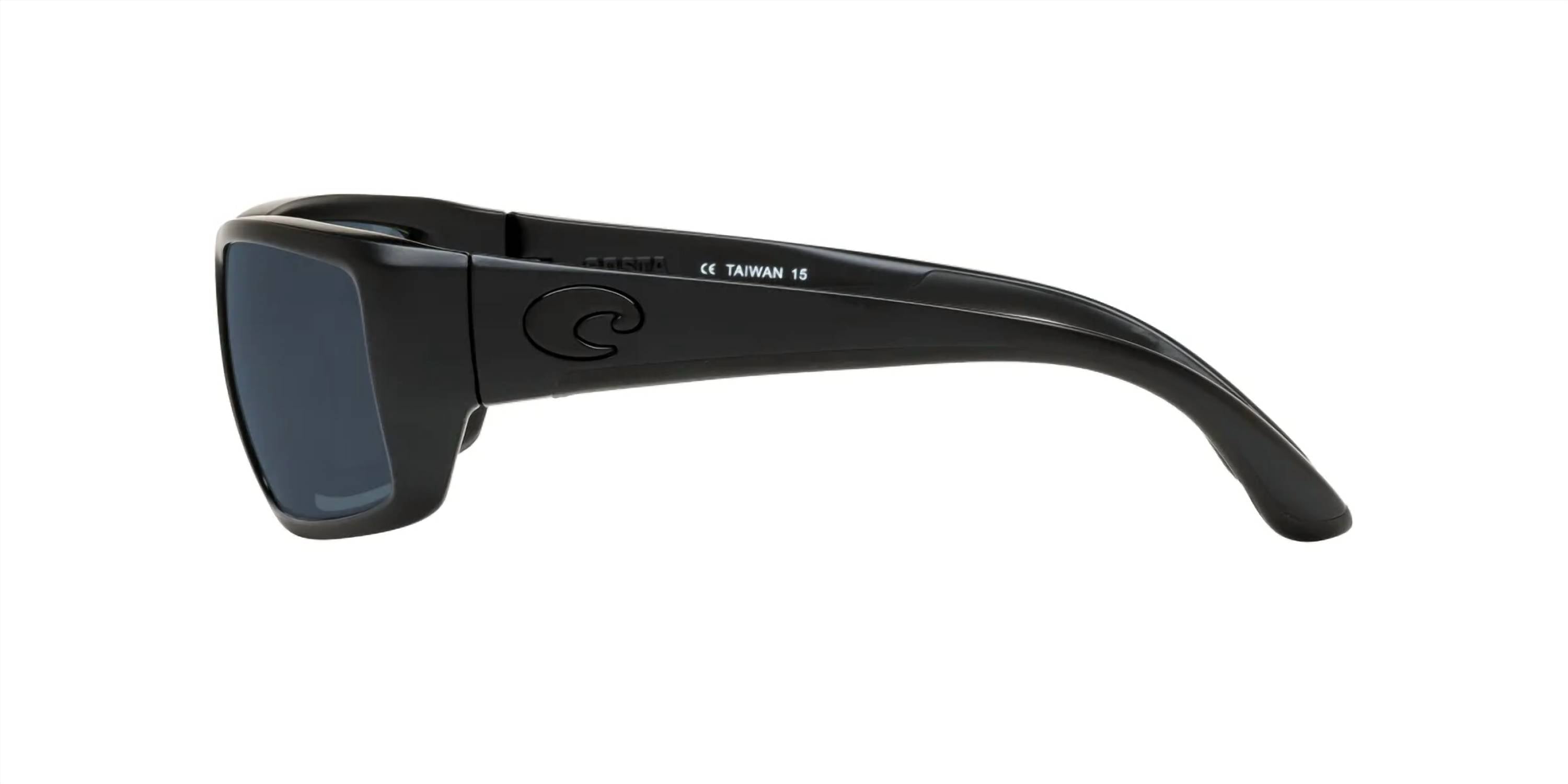 Meet the Costa Del Mar Fantail Sunglasses, crafted for serious anglers with a regular fit frame in a sleek Blackout color. The lenses are Gray Polarized Polycarbonate (580P) with a Base 8 Decentered curve, offering superior polarized clarity on the water. Designed in a square style, the dimensions are as follows: frame width 131 mm, bridge width 14 mm, lens width 59.2 mm, lens height 38.8 mm, and temple arm length 127 mm. These performance sport fishing sunglasses are not only co-molded but also a perfect choice for your next fishing adventure.