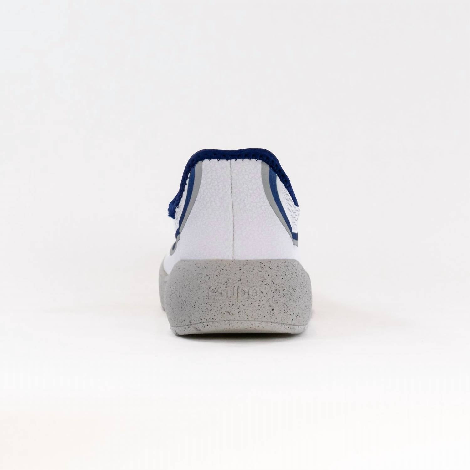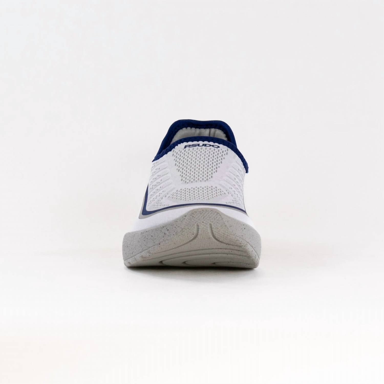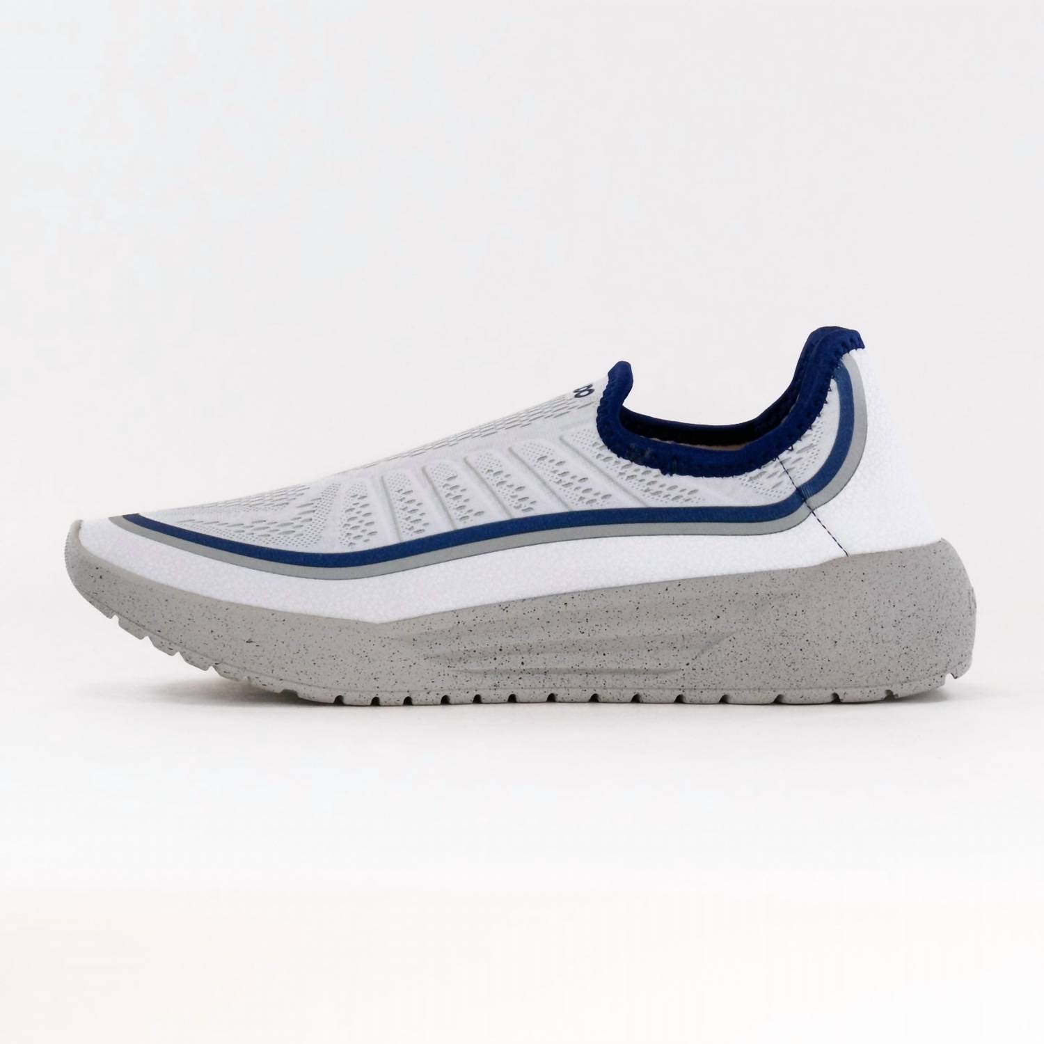 Introducing the PSUDO Men's Racer Sport Shoes in WHITE/NAVY, designed for the ultimate blend of comfort and style. These slip-on sneakers feature a breathable and sweat-wicking upper crafted from eco-friendly Repreve nylon, offering a perfect fit with or without socks. Made in the USA, they include anatomically correct arch support and an anti-microbial insole to provide superior all-day comfort. Care is simple: remove the insole, wash in cold water on a gentle cycle, and air dry for a fresh look year-round.