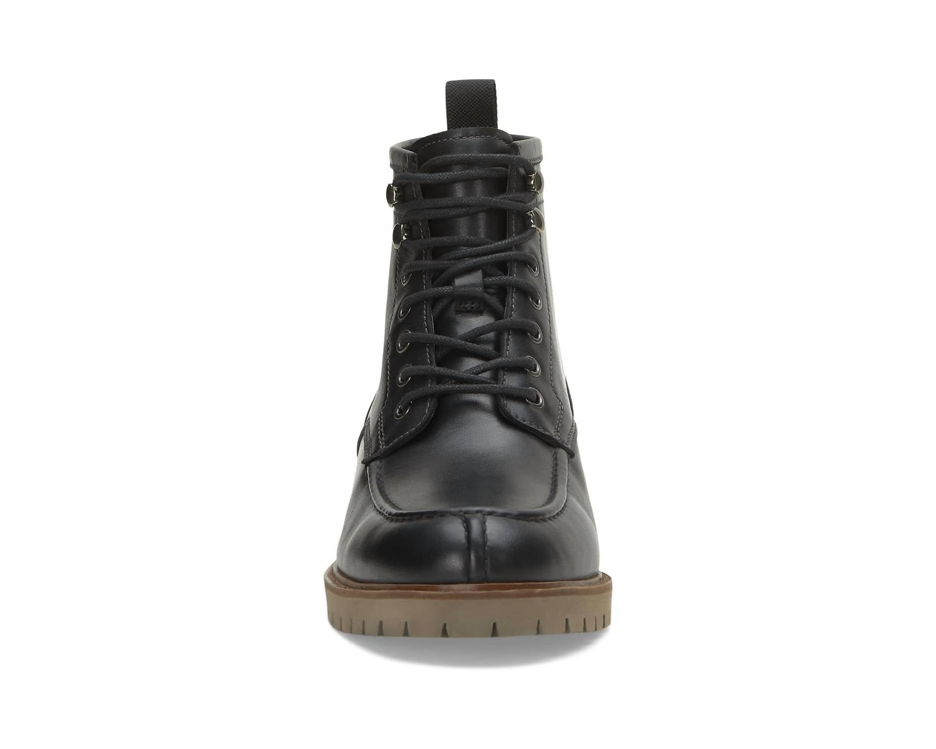 Crafted for style and function in sleek black. Ankle-length boots boast a leather upper and a breathable textile lining. Ensuring durability and comfort for every step. Designed with a convenient lace-up closure and a practical pull tab on the back. Feature a sturdy rubber outsole for enhanced traction.