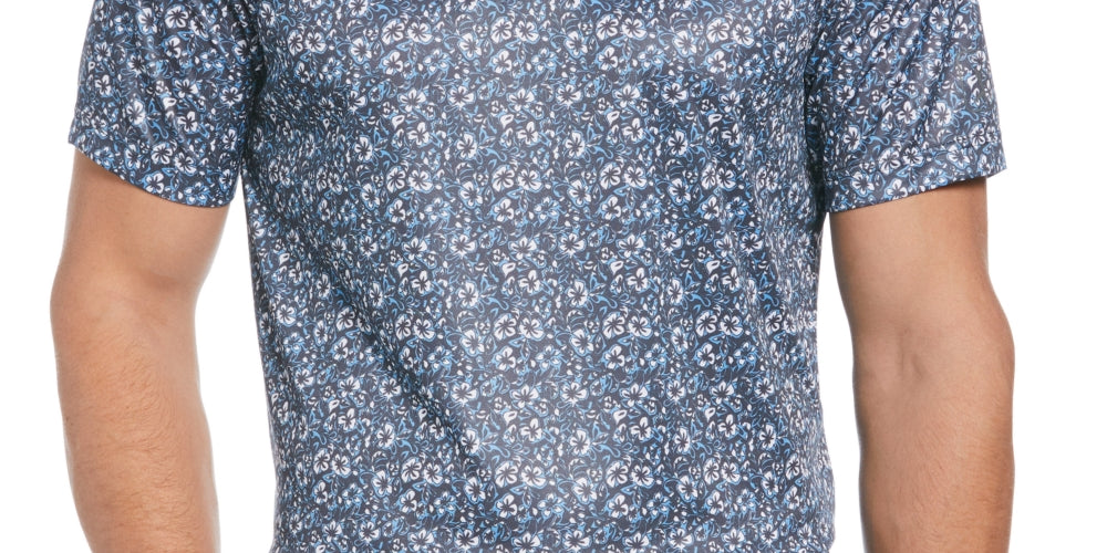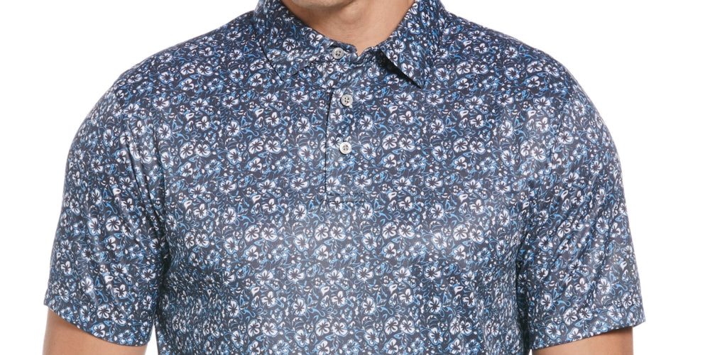 This PGA TOUR men's golf polo delivers vacation vibes on or off the course| featuring a comfortable athletic fit that can keep up with your active lifestyle.| Athletic fit| Polo collar with three-button placket | Allover floral print | Moisture-wicking properties | Built-in sun protection helps block out harmful UV rays