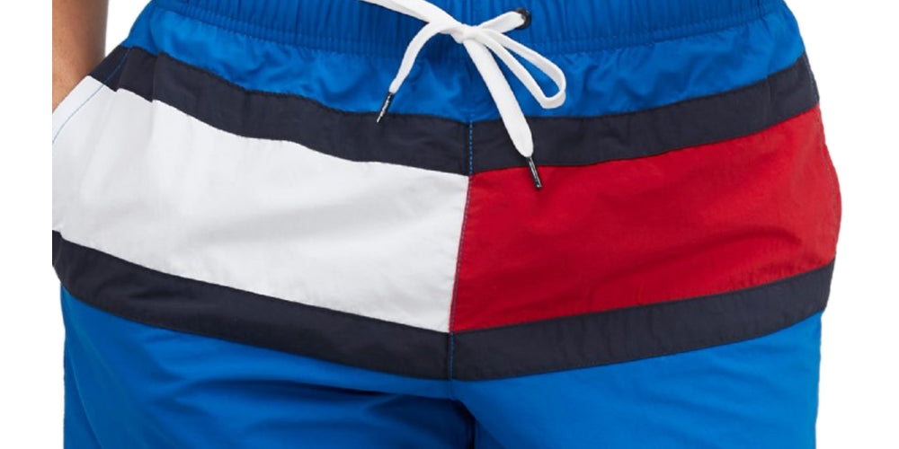 Whether you're soaking up sun by the pool or drying off on the beach|Tommy Hilfiger's signature swim trunks will keep you styled with elegance thanks to their iconic brand colors|