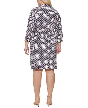 Jersey-knit; Soft and stretchy|Pullover styling|Unlined|3/4-sleeves with buttoned cuffs|Johnny collar at V-neckline; Shirtdress silhouette|Imported|Matching tie belt at waist