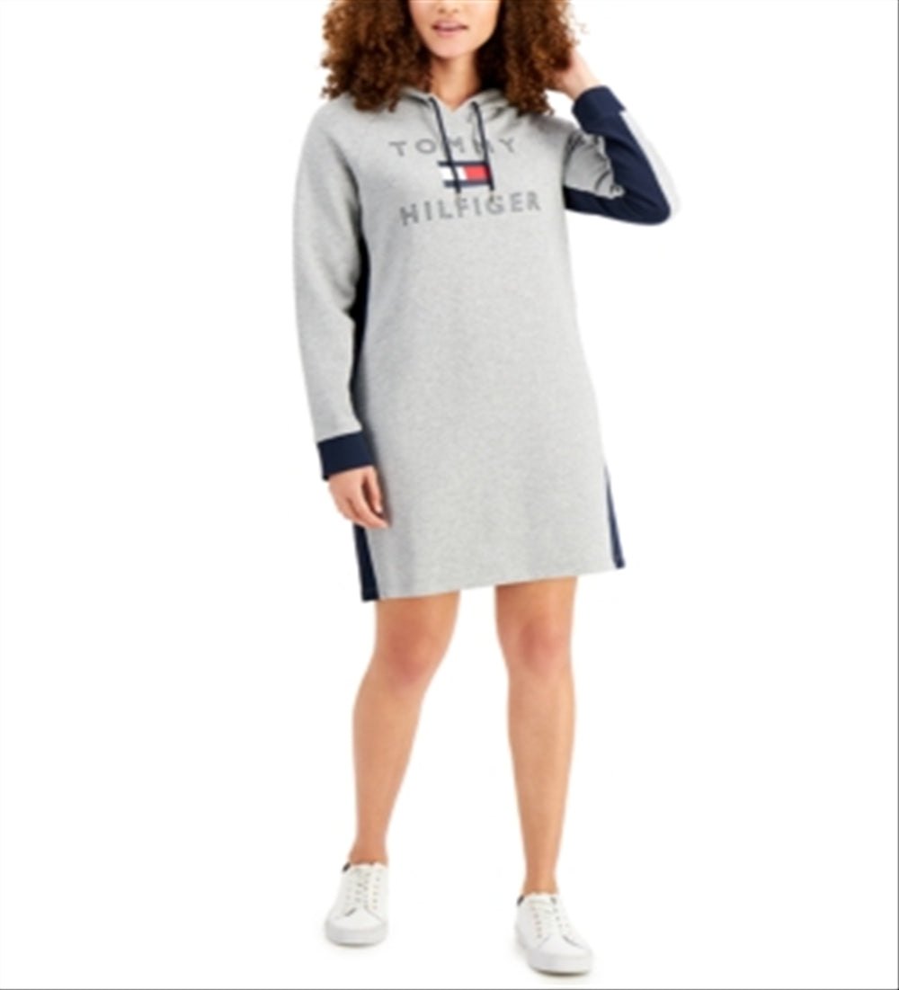 Revamp your sweatshirt style in this hoodie-inspired dress from Tommy Hilfiger designed with a logo print and a comfy drawstring hood