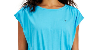 Tommy Hilfiger Women's Solid Smocked Waist Top Blue Size Large