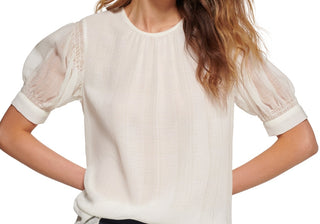 Tommy Hilfiger Women's Mixed Media Puff Sleeve Top White Size X Large