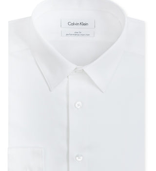 Calvin Klein Men's Slim Fit Non Iron Performance Herringbone Point Collar Dress Shirt White Size 17.5X32X33