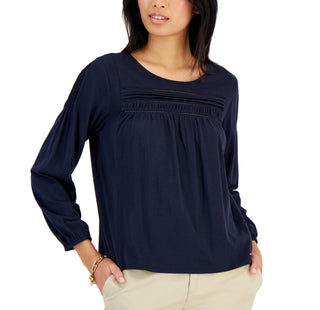 Tommy Hilfiger Women's Pintucked Top Blue Size Large