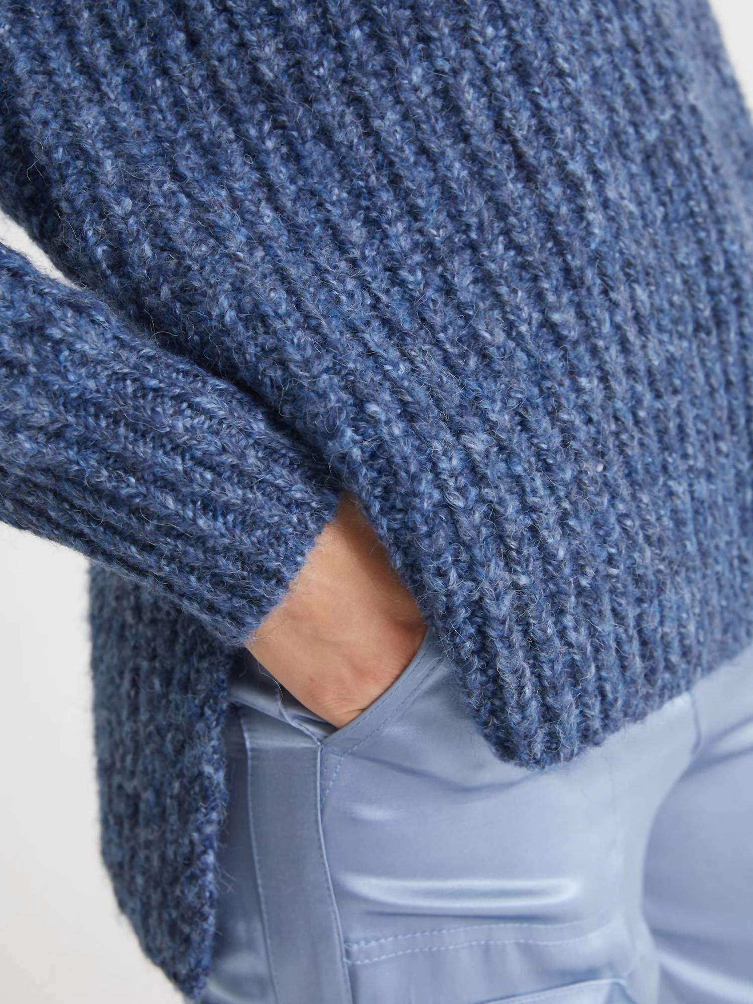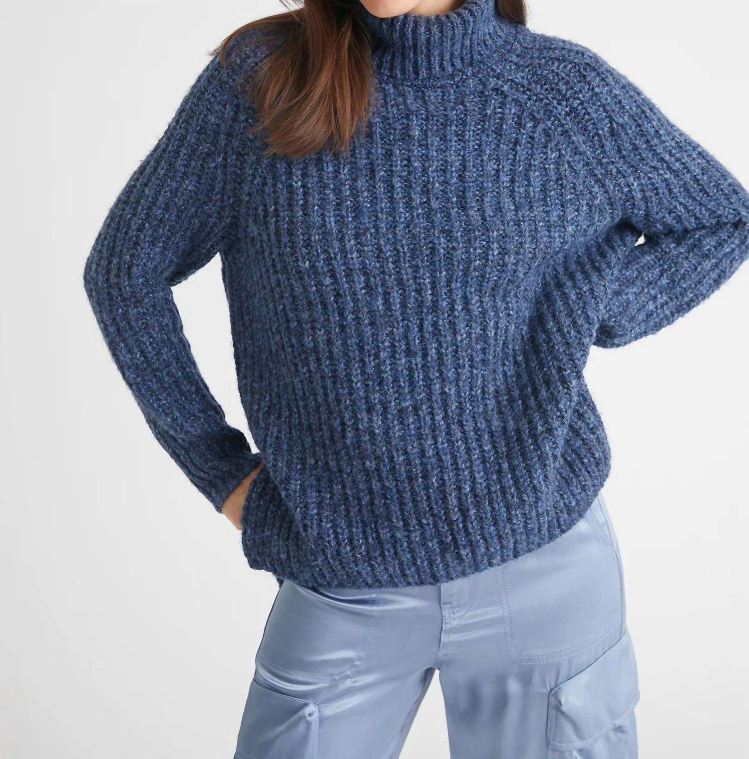 Wrap yourself in warmth with the 525 America Stella Shaker Turtleneck Sweater, designed specifically for chilly winter days. This textured, long sleeve sweater in a chic indigo hue features a relaxed fit with a cozy wide rib knit and a modern high-low hem with side slits. Comprised of 77% Polyester and 23% Acrylic, this garment offers a pull-on closure for easy wear. For best results, turn inside out and machine wash in cold water with like colors on a gentle cycle, and tumble dry low.