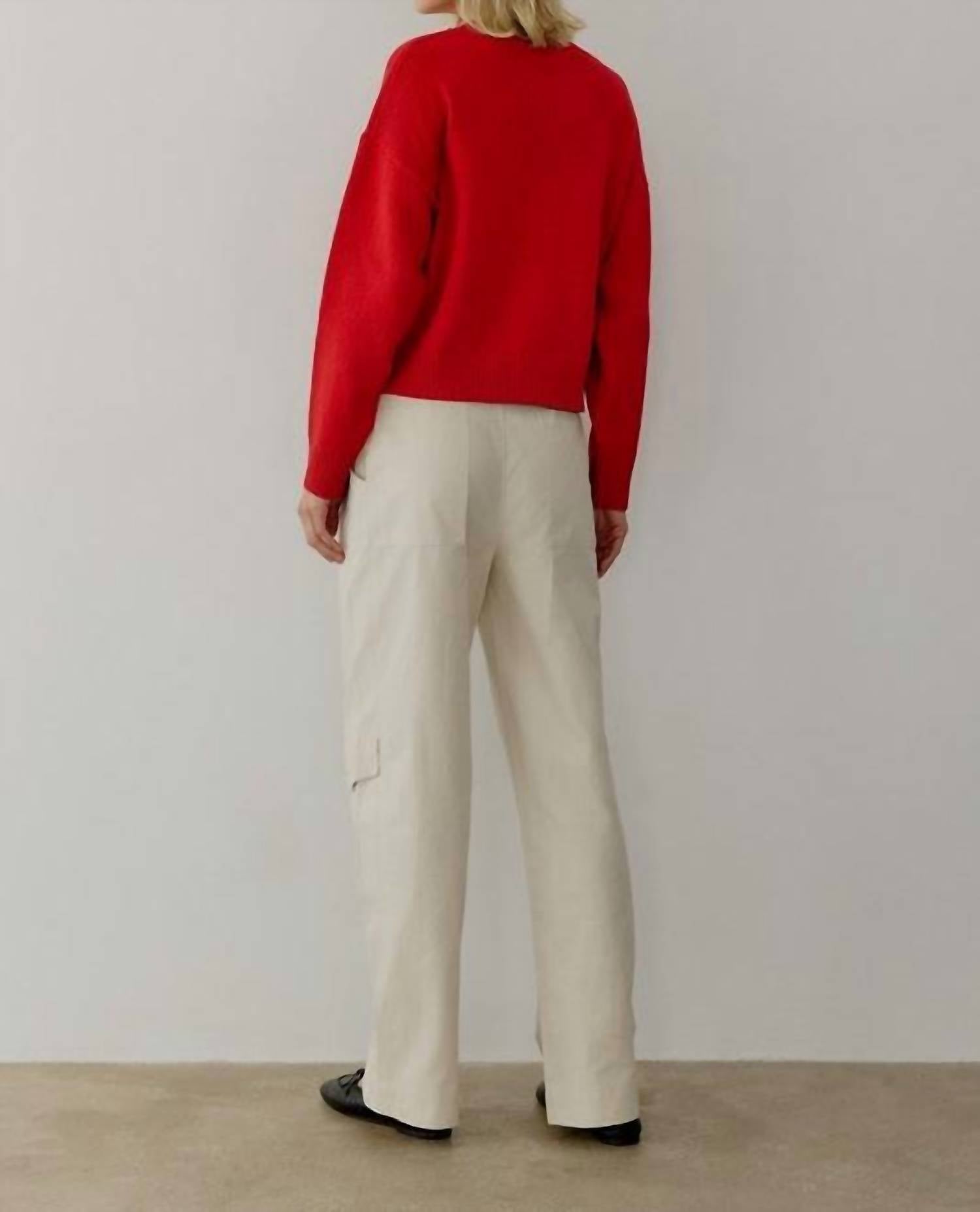 A classic fit that works just as good buttoned as it does left open. Introducing the Lucy Cardigan by all : row, a stylish addition to your fall wardrobe in vibrant red. This women's semi-cropped cardigan features short sleeves and a boxy fit with a modern drop shoulder design. Crafted from a cozy mid-weight knit composed of 50% Acrylic and 50% Viscose, it's perfect for layering with high-waisted bottoms or dresses. Closure: Button closure. Care: Machine wash.