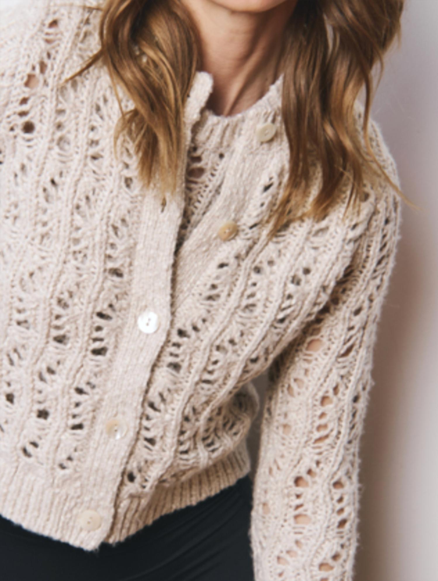 Introducing the Boxy Stitchery Crew by Autumn Cashmere, a chic choice for transitional seasons. This cardigan showcases long sleeves and a textured design in a stylish Tarmac hue. Crafted from a cotton blend of 75% cotton and 25% merino, it features a crewneck and a convenient button closure. Care for this elegant piece by dry cleaning only, making it perfect for any holiday party occasion.