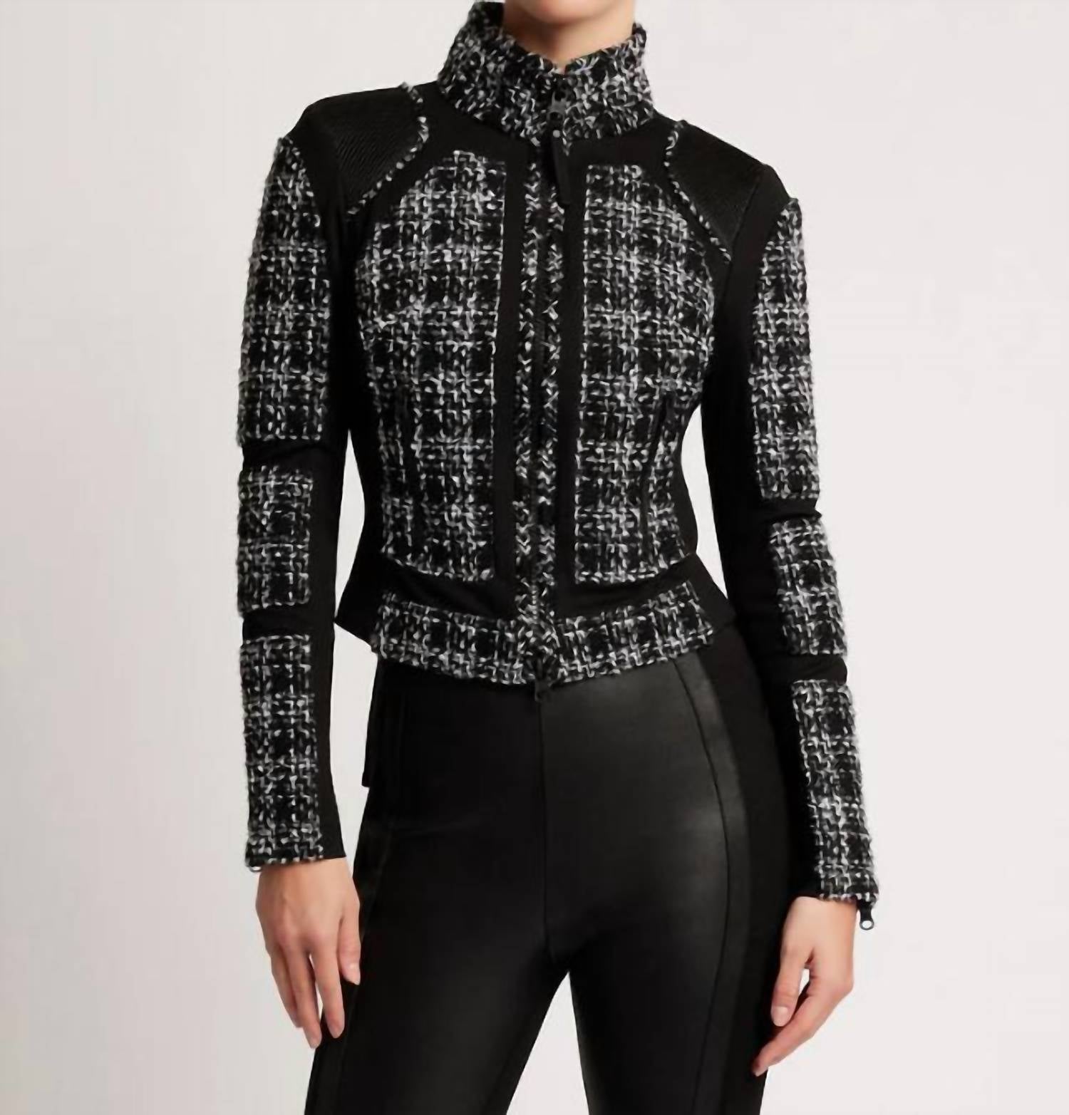 An elevated version of your favorite classic blazer. https://everardsclothing.com/product/boucle-moto-mesh-jacket/#:~:text=The%20Boucle%20Moto,POLYESTER%203%25%20SPANDEX