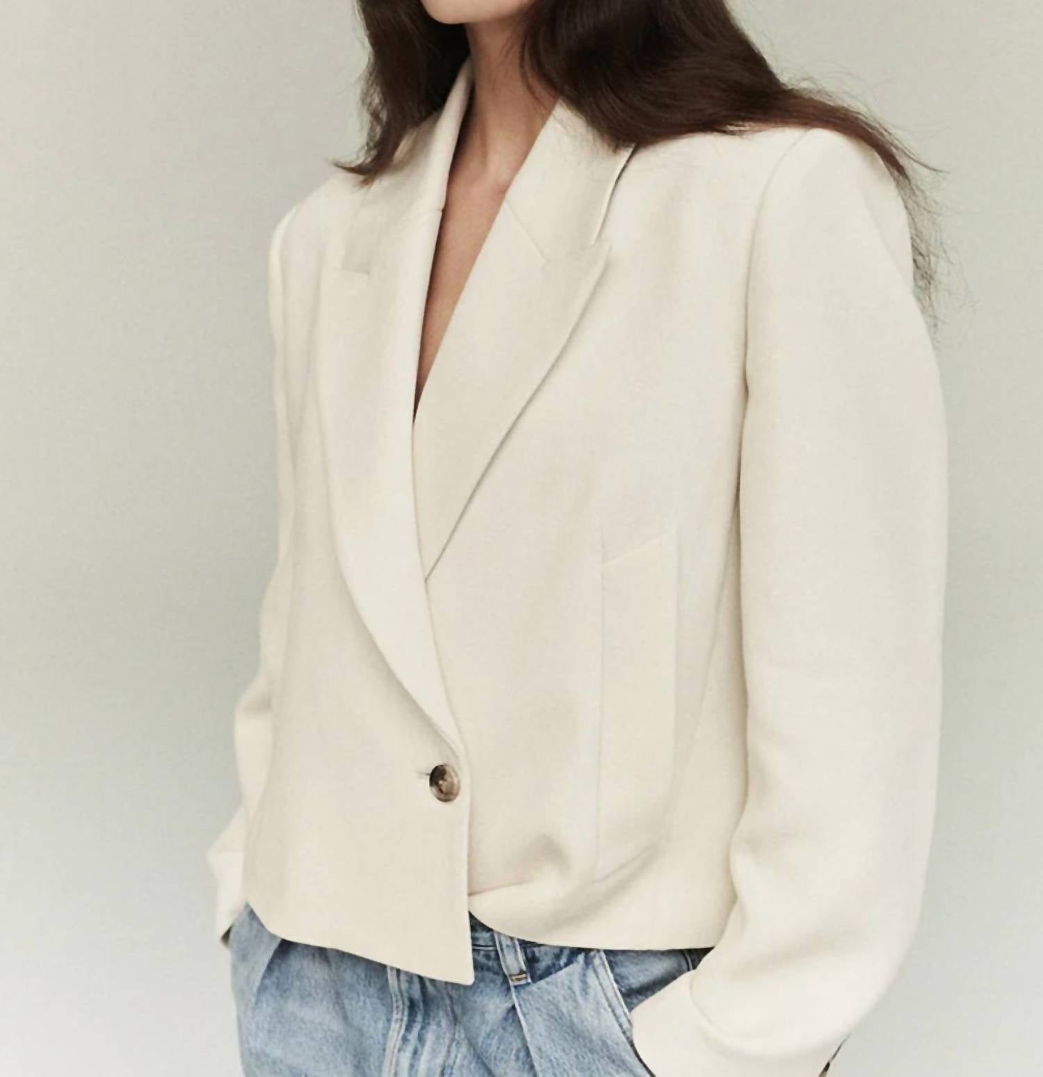 Tailored to perfection, this blazer will be your go-to jacket for years to come. Introducing the Coren Cropped Blazer by Citizens of Humanity, a sophisticated addition to your wardrobe in a chic off-white cream. This long sleeve blazer is crafted from cotton with a soft hand feel, offering an elegantly oversized silhouette and boxy fit. It features convenient slanted pockets and a classic collar, with a button closure for a refined finish. Care is effortless with machine wash and tumble dry instructions, making it a perfect choice for holiday events or spring gatherings.