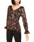 Bar III Women's Printed V Neck Top Charcoal Size X-Large