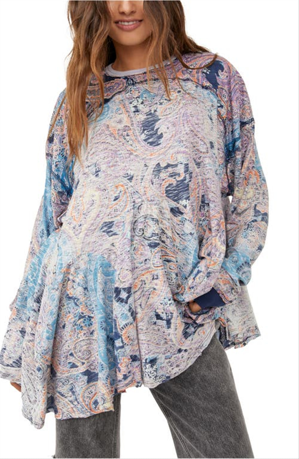 Free People Women's Making Circles Paisley Cotton & Modal T-Shirt Blue Size X-Small