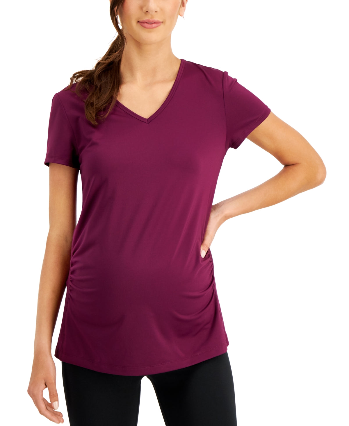 Hit that next prenatal yoga class in comfort and style in this maternity tee from ID Ideology.| Relaxed fit; approx. 26-1/2 long| V-neck| Elasticized at sides| | Polyester/spandex| Machine washable