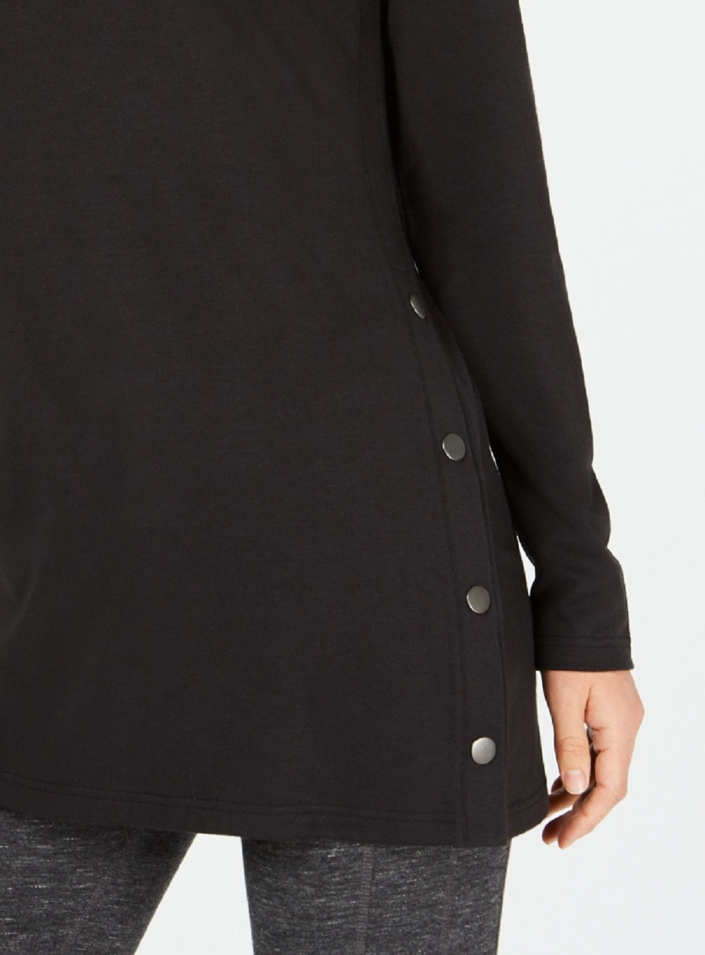 Vary your look with this chic tunic from ID Ideology| trimmed with functional snaps at the sides that let you change things up.| Hits at low hip with functional snaps at sides| INSPIRED FOR; Athleisure| Crewneck|