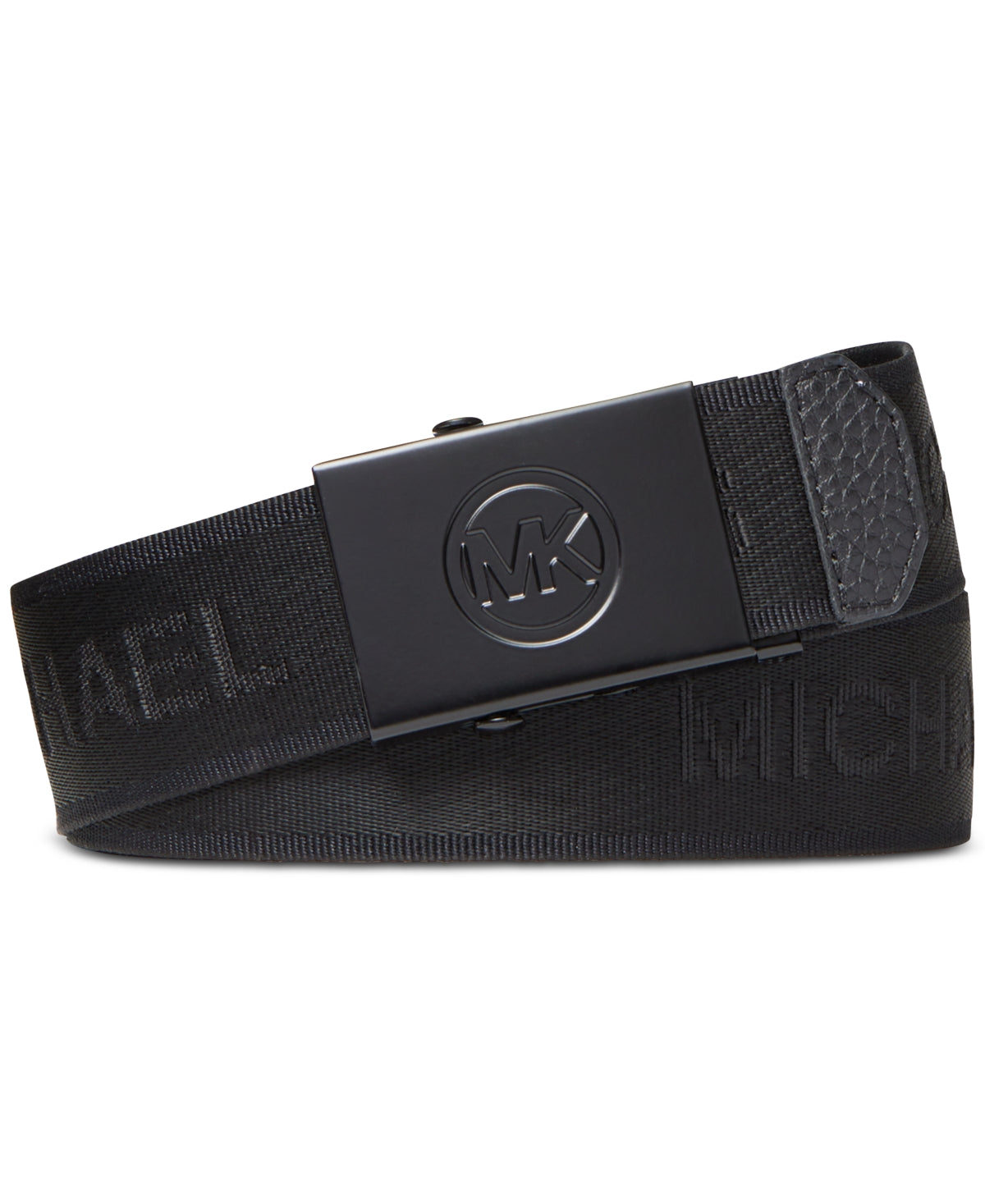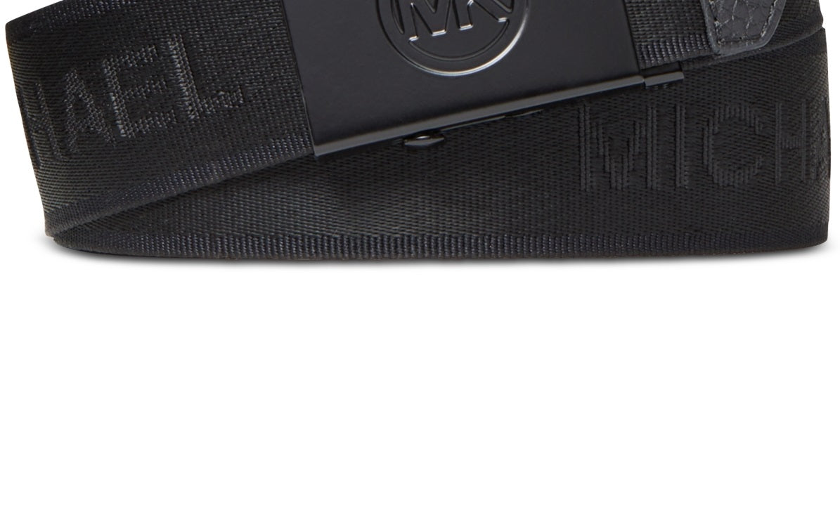 Michael Kors raises the bar with the subtle details of this belt| designed with a plaque buckle and logo-tape detailing that will add style points to any look.| Plaque buckle | Imported| 34mm | Logo tape |