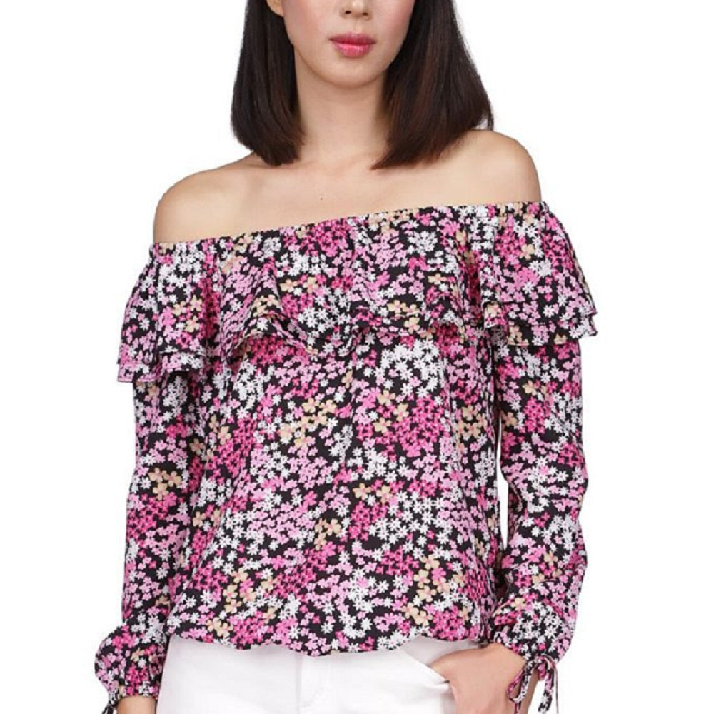 Michael Kors Women's Floral Peasant Top Pink Size Small