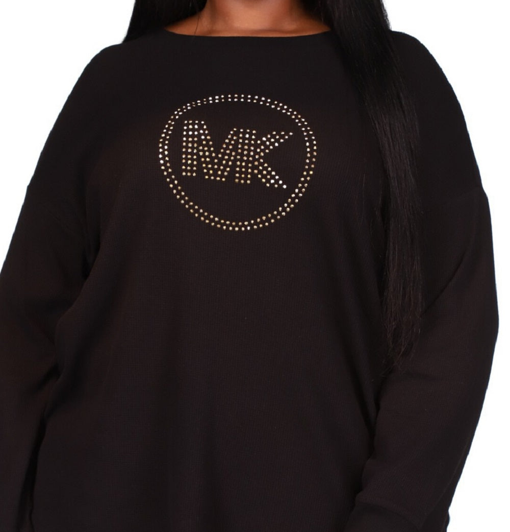 Michael Kors shines with a plus size waffle-knit long-sleeve T-shirt affixed with a rhinestone logo