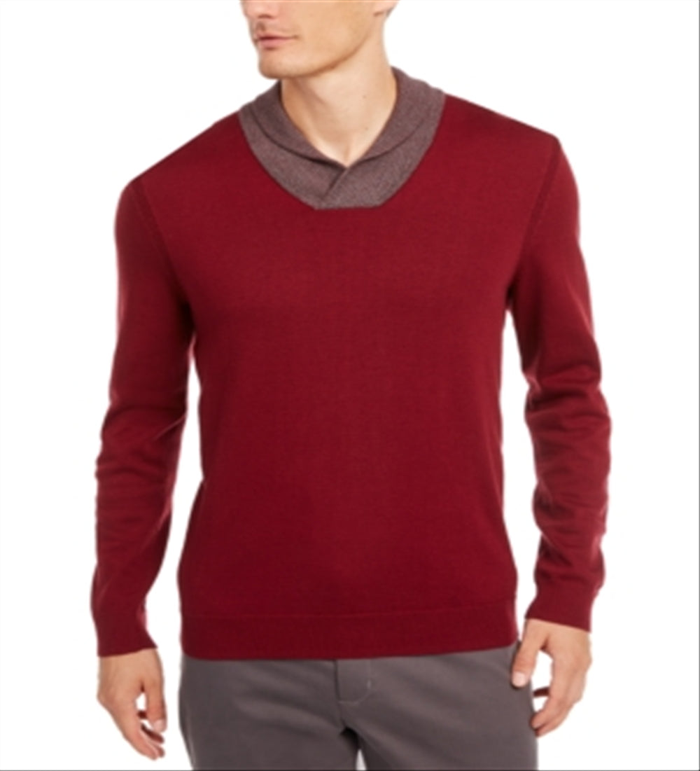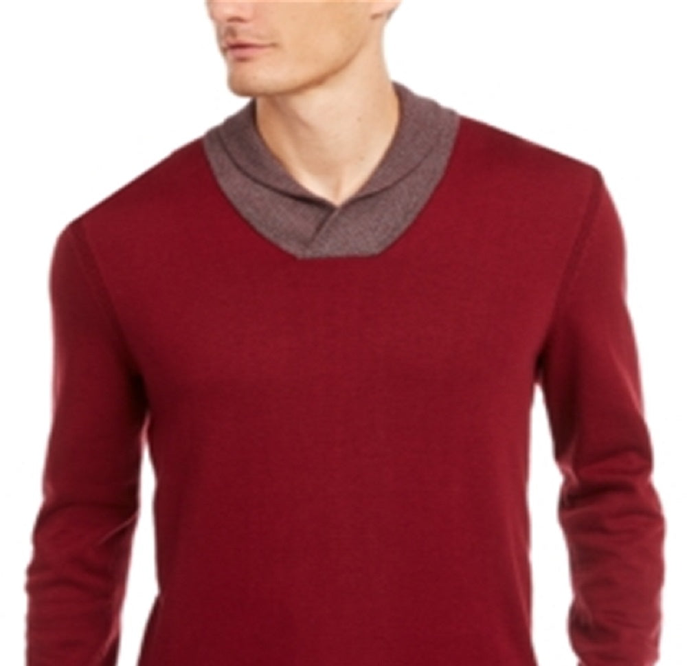 Tasso Elba Men's Contrast Shawl Collar Supima Cotton Sweater Red Size Medium