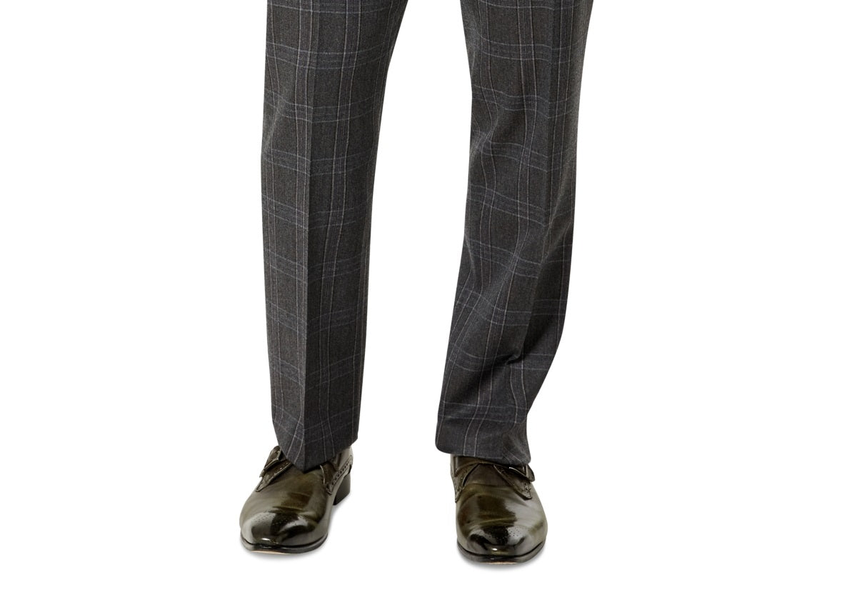 When you want to bring an extra touch of personality and vintage-inspired style to your next formal event| suit up in these classic-fit windowpane suit pants from Tayion Collection.| Classic fit | Zip fly with button and hook closure| Belt loops| Side pockets| Crease