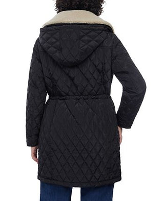 Michael Kors Women's Hooded Faux Fur Collar Quilted Coat Black Size 1X