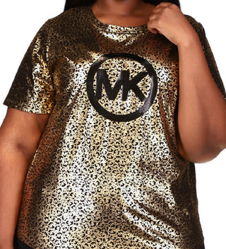Michael Kors Women's Metallic Foil Logo Print T-Shirt Black Size 2X
