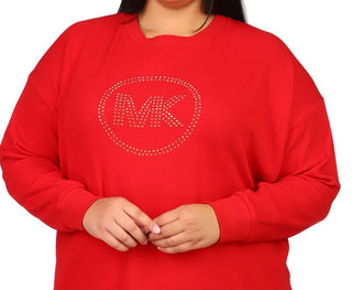Michael Kors Women's Rhinestone Logo Waffle Knit T-Shirt Red Size 4X