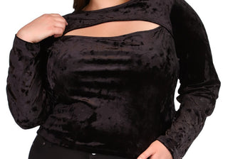 Michael Kors Women's Cutout Long Sleeve Velvet Top Black Size 3X