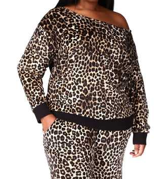 Michael Kors Women's Animal Print Velour Off The Shoulder Top Brown Size 1X