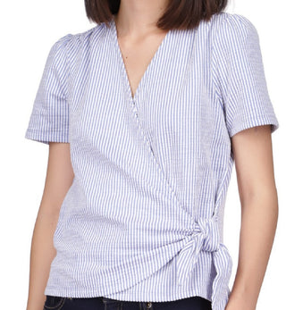 Michael Kors Women's Short Sleeve Wrap Top Blue Size Petite Large