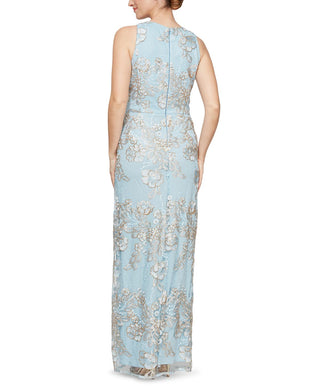 Alex Evenings Women's Embroidered Trumpet Gown Size 6 Blue Size 6