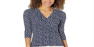 Ralph Lauren Women's Floral Wrap Style Jersey Top Blue Size X-Large