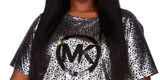 Michael Kors Women's Metallic Foil Logo Print T-Shirt Gray Size 3X
