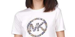 Michael Kors Women's Short Sleeve Floral Circle T-Shirt White Size Petite Large