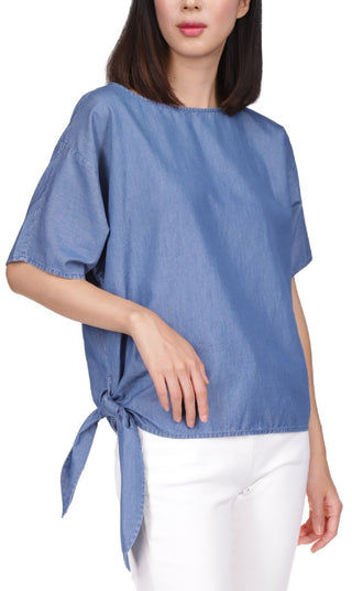 Michael Kors Women's Short Sleeve Striped Faux Wrap Dress Blue Size Medium
