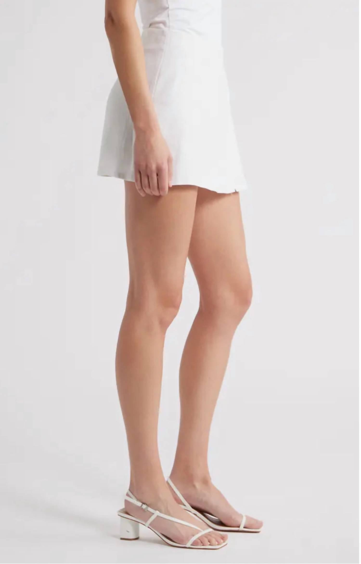 Elevate your summer wardrobe with the Avalon Skort by Steve Madden, a minimalist essential in fresh white. Crafted from a linen blend, this skort blends the elegance of a mini skirt with the practicality of built-in shorts, featuring a sleek faux wrap front and a clean waistband. This solid, pull-on design offers versatile styling, perfect for pairing with matching blazers or casual tanks. Care for this vacation-ready piece is simple: machine wash and tumble dry for easy maintenance.