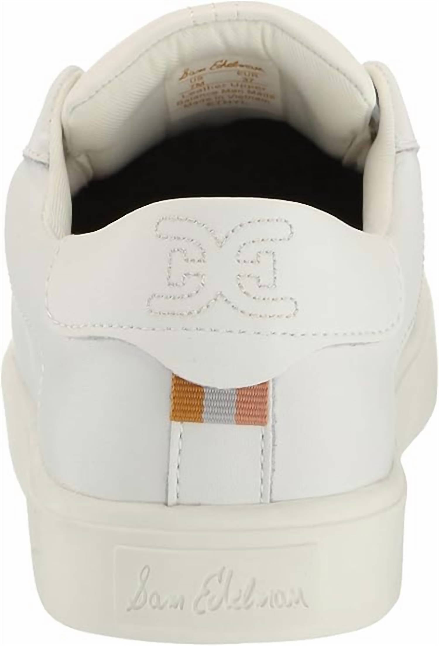 Get your daily steps in with these adorable sneakers. Introducing the Women's Ethyl Lace Up Sneakers by Sam Edelman in white leather, a chic and versatile addition to your summer streetwear collection. These sneakers feature an adjustable lace-up style and a luxurious leather upper for a sleek look. The removable insole paired with synthetic lining and sole offers comfort and durability, with the added height of a 1.0" platform heel. Made with craftsmanship in mind, these imported sneakers embody both style and ease, perfect for travel and everyday wear.
