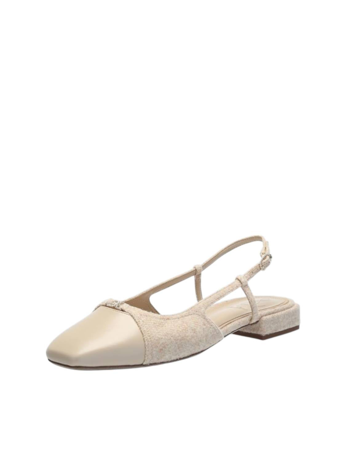 Loafers so versatile you can wear them with just about anything. Experience elegance with the Women's Kara Slingback Flat by Sam Edelman, available in a sophisticated Beechwood/Oat color. Crafted with a blend of leather, synthetic, and fabric materials, this chic flat features a square toe and a 1-inch flat heel, perfect for all-day wear. The classic slingback silhouette includes a buckle closure for a secure fit and a synthetic insole for comfort. Ideal for travel or as a go-to workwear option, this shoe adds a touch of class to any outfit, making it a perfect choice for Mother's Day or any spring occasion.