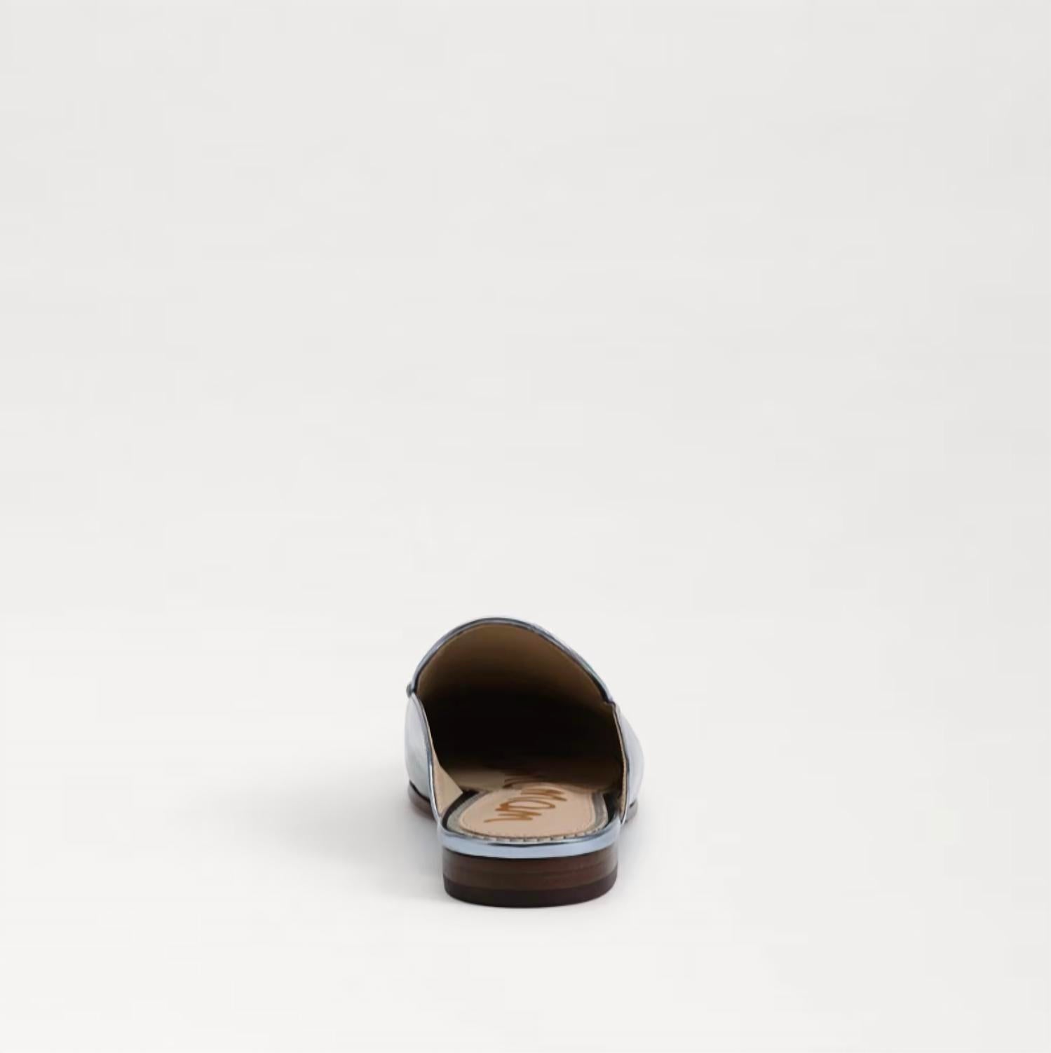 Stylish, comfy, and versatile. We can't find anything wrong with these. Elevate your style with the Women's Linnie Slip On Round Toe Chain Detailed Wide Mules by Sam Edelman in a stunning Metallic Sky. These sophisticated mules feature a slip-on design with gold-tone hardware and a padded footbed for comfort. The synthetic sole and flat profile make them an ideal choice for both casual and dressy occasions, from jeans to dresses. Designed with a rounded toe and flat heel, they're perfect for the Fall season and Thanksgiving holiday parties.